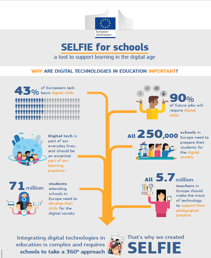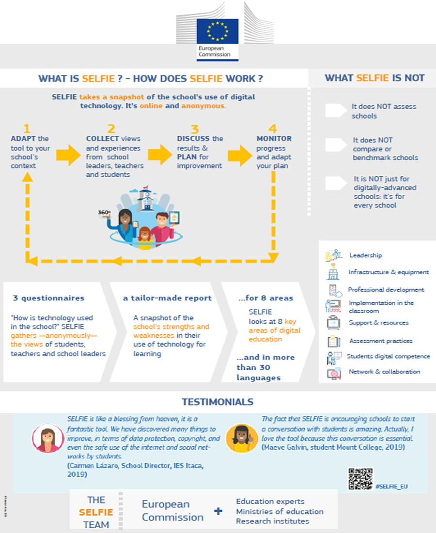 O SELFIE (sigla de «Self-reflection on Effective Learning by Fostering the use of Innovative Educational technologies» [Autorreflexão sobre a aprendizagem eficaz através da promoção da utilização de tecnologias educativas inovadoras]) é uma ferramenta online gratuita que visa ajudar as escolas a avaliar a sua utilização das tecnologias digitais com vista a uma aprendizagem inovadora e eficaz. Com o SELFIE, as escolas podem ter uma noção da sua situação em termos da utilização das tecnologias digitais, adotando as perspetivas dos professores, alunos e dirigentes escolares. Este processo de autoavaliação pode ajudar a iniciar um diálogo no seio da escola sobre eventuais áreas a melhorar. O SELFIE também permite que uma escola monitorize o seu progresso ao longo do tempo.